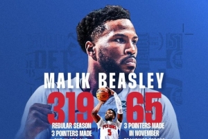 本賽季比斯利命中319記三分,創(chuàng)造隊(duì)史紀(jì)錄&排名聯(lián)盟第二;11月命中65記三分創(chuàng)隊(duì)史單月紀(jì)錄,場(chǎng)均砍下16.3分,37場(chǎng)比賽砍下15+得分,三分命中率41.6%,82場(chǎng)全勤。