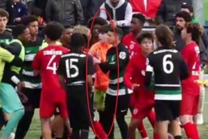 比賽中雙方發(fā)生沖突,對峙時(shí)中國足球小將隊(duì)長汪修昊遭對手出黑拳偷襲,隨后中國足球小將的外援門將卡佐拉-馬丁出手還擊,為汪修昊出頭。