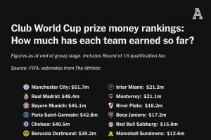 體育資訊06月28日訊 2025世俱杯小組賽戰(zhàn)罷,淘汰賽即將開打,The Athletic統(tǒng)計(jì)了32支參賽球隊(duì)目前的獎(jiǎng)金明細(xì)及其排行。