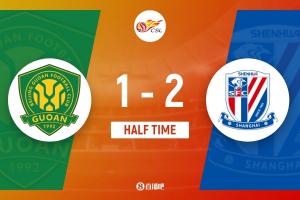 上半場(chǎng)傷停補(bǔ)時(shí)6分鐘,半場(chǎng)結(jié)束,北京國(guó)安暫1-2上海申花。