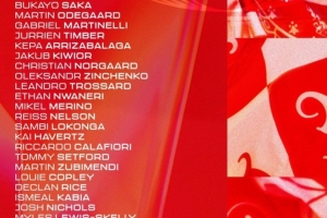 前鋒:薩卡、馬丁內(nèi)利、特羅薩德、恩瓦內(nèi)里、尼爾森、哈弗茨、卡比亞、道曼、阿努斯