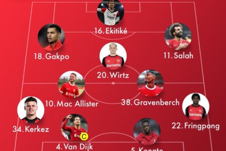 本圖為預(yù)測(cè)圖,球員實(shí)際號(hào)碼未確定,且利物浦已官宣退役已故前鋒若塔20號(hào)球衣