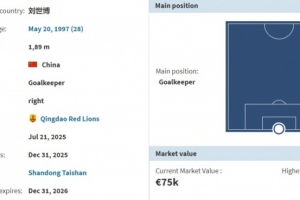 劉世博,1997年5月20日出生,曾效力于廣州隊。2023年,劉世博加盟山東泰山隊。2024賽季,劉世博代表泰山隊出戰(zhàn)6場。本賽季,劉世博沒有為泰山一線隊登場。