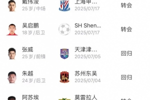 申花夏窗轉(zhuǎn)入方面,崔麟和戴偉浚補報名,球隊上調(diào)了吳啟鵬,另外還從葡超莫雷拉人引進外援阿蘇埃。