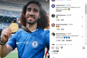 切爾西官方社媒曬出庫庫雷利亞展示世俱杯冠軍獎牌的照片,配文:“祝切爾西3號球員庫庫雷利亞生日快樂!”