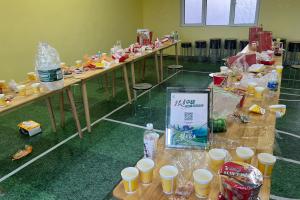 來到青島西海岸的客隊球迷區(qū),人家賽區(qū)竟然在客隊球迷休息室里準備了一堆吃的喝的,包括但不限于肯德基、方便面、礦泉水。