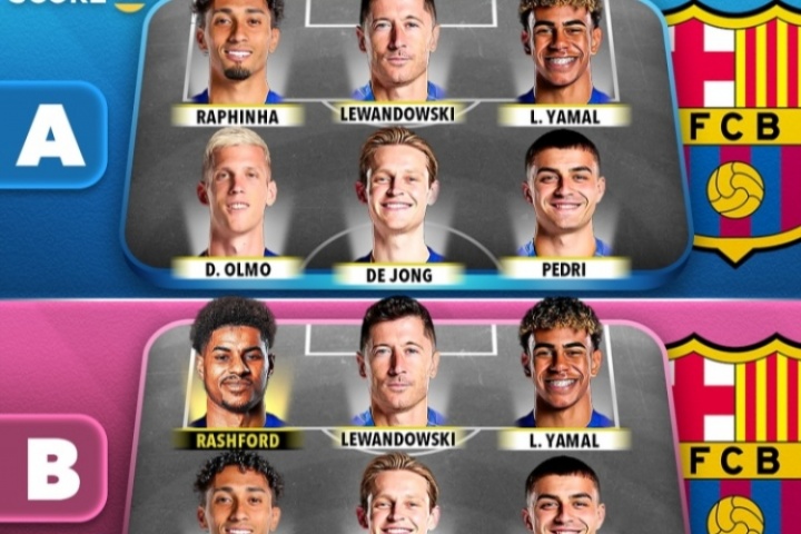 組合B:拉什福德、萊萬(wàn)、亞馬爾、拉菲尼亞、德容、佩德里