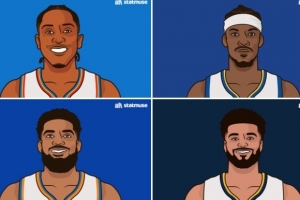 穆雷上賽季常規(guī)賽場均21.4分3.9板6助攻;季后賽場均21.8分4.9板5.2助攻,次輪搶七不敵雷霆。