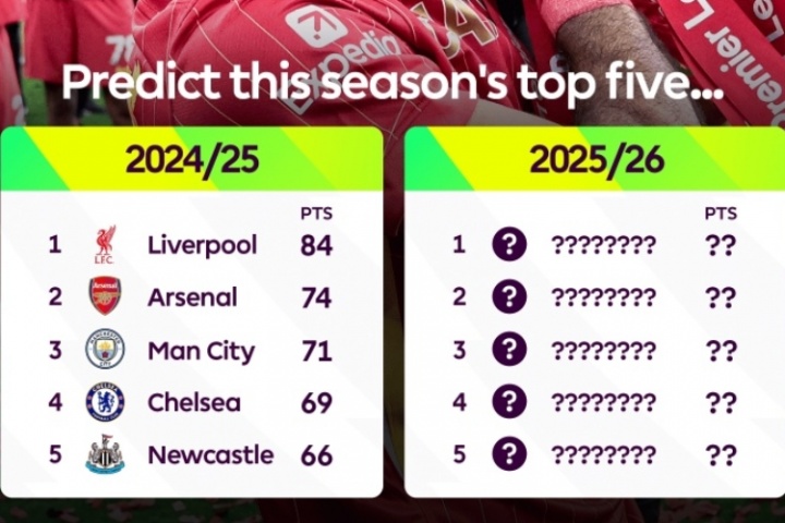 英超官方曬上賽季前五并發(fā)問(wèn):預(yù)測(cè)一下新賽季前五,你怎么看?