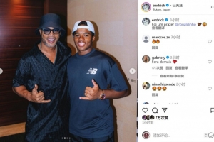 恩德里克在東京與小羅見面并合影,他在社交媒體上曬出合照,并配文:“很榮幸。”