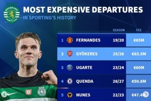 體育資訊7月27日訊 阿森納已經(jīng)官宣簽下瑞典中鋒約克雷斯,《轉(zhuǎn)會(huì)市場(chǎng)》也統(tǒng)計(jì)了葡體歷史最貴賣(mài)人情況。