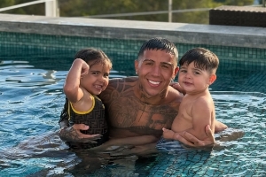 體育資訊07月28日訊 切爾西中場(chǎng)恩佐社媒曬照,與兒女一起在泳池嬉戲。