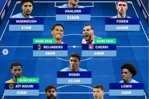前鋒:馬爾穆什(7500萬(wàn))、哈蘭德(1.8億)、福登(1億)