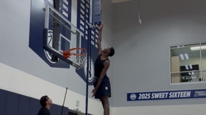 迪班薩,26屆狀元大熱,身高2米06,臂展2米13,楊百翰大學給出的彈跳數(shù)據(jù)是42英寸(1米07)