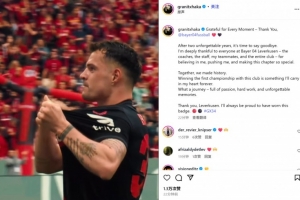 體育資訊7月30日訊 勒沃庫森已經(jīng)官宣32歲的中場(chǎng)扎卡轉(zhuǎn)會(huì)桑德蘭,后者也通過社媒發(fā)文告別: