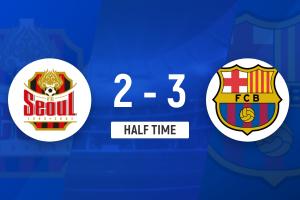 上半場比賽結束,巴塞羅那3-2首爾FC。