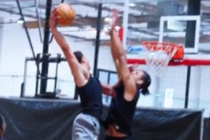 視頻中,布萊恩特以一個戰(zhàn)斧隔扣開場,非常炸裂。