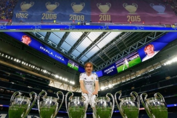 皇馬大V球迷號曬圖反擊:莫德里奇生涯六奪歐冠冠軍,而巴薩隊史總計只有五座歐冠。