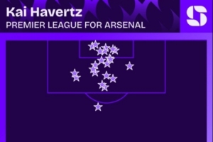 據(jù)統(tǒng)計(jì),哈弗茨打進(jìn)這22粒進(jìn)球用了122次射門,其中21球禁區(qū)內(nèi)打進(jìn),1球禁區(qū)外,他的預(yù)期進(jìn)球值為22.7個。