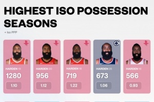 15-16賽季,哈登單打566次