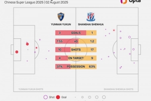 上海申花足球俱樂(lè)部在對(duì)陣云南玉昆足球俱樂(lè)部的上半場(chǎng)比賽中一共有17次射門(mén),其中9次射正,這兩項(xiàng)數(shù)據(jù)都創(chuàng)造自2012年Opta采集相關(guān)數(shù)據(jù)以來(lái),球隊(duì)單場(chǎng)中超上半場(chǎng)的紀(jì)錄??窆?/p>