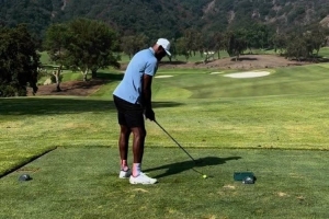 詹姆斯轉(zhuǎn)發(fā)了一組友人發(fā)布的他今日練習(xí)高爾夫的視頻。