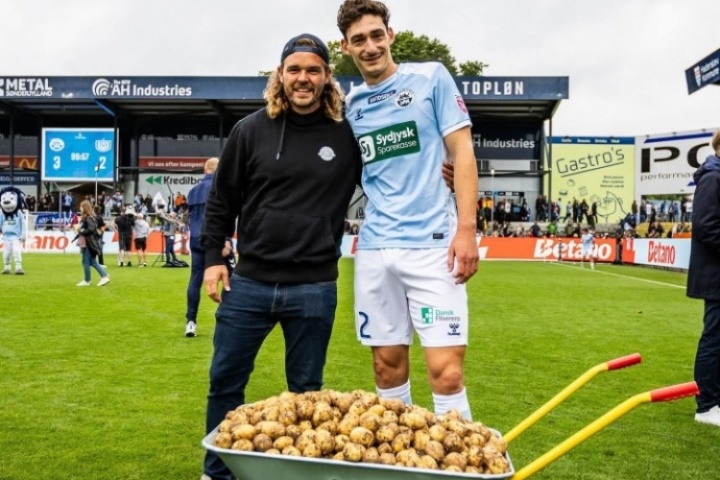 【戰(zhàn)利品55kg土豆??】 ????丹麥超級(jí)聯(lián)賽S?nderjyske在3-2戰(zhàn)勝FC Nordsj?lland的比賽中,全場最佳球員的獎(jiǎng)品是一整袋55kg的土豆!