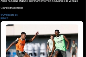 體育資訊8月5日訊 據(jù)記者Alberto Pereiro報(bào)道稱,阿拉巴完整地參加了皇馬全隊(duì)的合練,并且沒有纏任何繃帶。