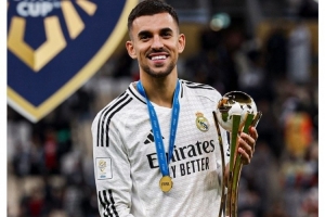 皇馬官方社媒曬出塞巴略斯手捧獎杯的照片,配文:“生日快樂,塞巴略斯!”