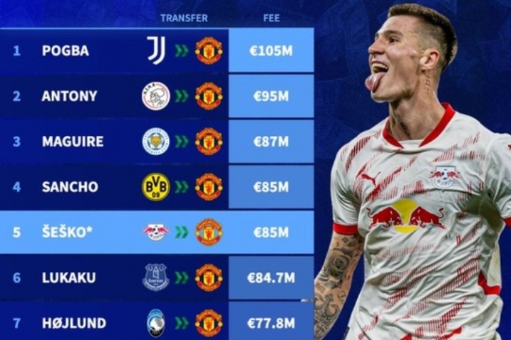 4. 塞斯科(萊比錫紅牛→曼聯(lián),8500萬(wàn)歐)