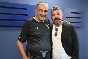 “加圖索在福爾梅洛訓練基地得到了拉齊奧體育總監(jiān)法比亞尼、領隊比安奇的歡迎,并和拉齊奧主帥薩里以及球員們進行了簡單問候。他還觀看了拉齊奧的訓練?!?/p>