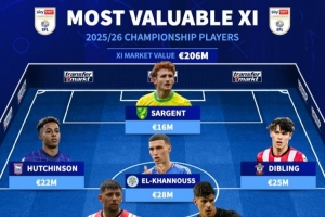 體育資訊8月8日訊 新賽季英冠今夜開打,德轉(zhuǎn)列出了截至目前聯(lián)賽最貴11人陣,迪布林、哈欽森、埃爾哈努斯、貝利斯在列,11人總身價(jià)2.06億歐。