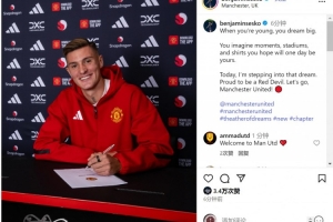 塞斯科配文:“當你年輕時,你會懷揣遠大夢想。你會想象那些時刻、球場和球衣,期盼有一天它們屬于你。如今,我正實現(xiàn)這個夢想。很自豪成為紅魔的一員。加油,曼聯(lián)!”