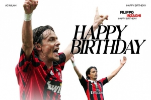 體育資訊8月9日訊 今天是意大利足壇名宿因扎吉的52歲生日,老東家米蘭為他送上祝福。