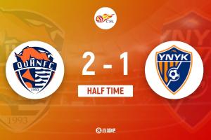 半場戰(zhàn)罷,海牛暫2-1玉昆。