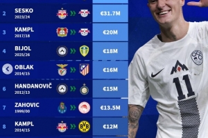 體育資訊8月9日訊 曼聯(lián)官方宣布塞斯科加盟,固定轉會費7650萬歐。德轉也盤點了歷史上斯洛文尼亞球員轉會費榜單,其中塞斯科高居榜首,具體如下:
