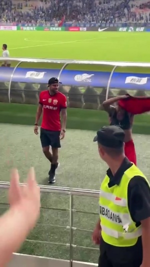 事發(fā)當(dāng)時(shí),海港外援茹薩脫下球衣,想要把球衣贈(zèng)送給看臺(tái)上要他球衣的一名球迷。但就在球衣即將到手時(shí),一名申花球迷突然對(duì)其進(jìn)行了推搡。