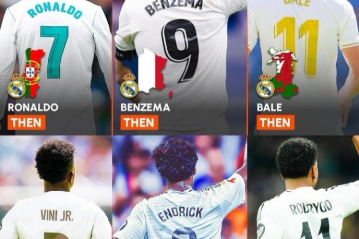 下賽季皇馬的7號、9號、11號均屬于巴西球員,維尼修斯身披7號,恩德里克身披9號,羅德里戈身披11號。