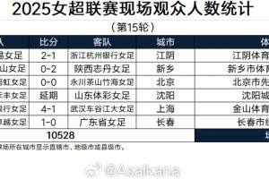 2025女超聯(lián)賽現(xiàn)場觀眾人數(shù)統(tǒng)計(第15輪) ???