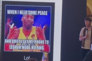 2012年,13歲的里夫斯在社媒發(fā)推,配圖是科比攤手,配文則是:“當(dāng)我想安靜下來的時候,我會將手機(jī)設(shè)置為勒布朗模式,不響鈴。哈哈。”(不響鈴,No Ring,沒戒指。當(dāng)時詹姆斯距離獲得自己的第一個總冠軍還有2個月的時間)。