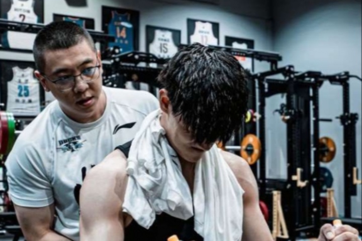曾凡博繼續(xù)進行背部康復訓練,為月底前往布魯克林做準備。圖中他在北京與TT運動表現(xiàn)體能館的長期訓練師段然在一塊。他預計會為10月10日和12日在中國澳門舉行的NBA中國賽做好準備。