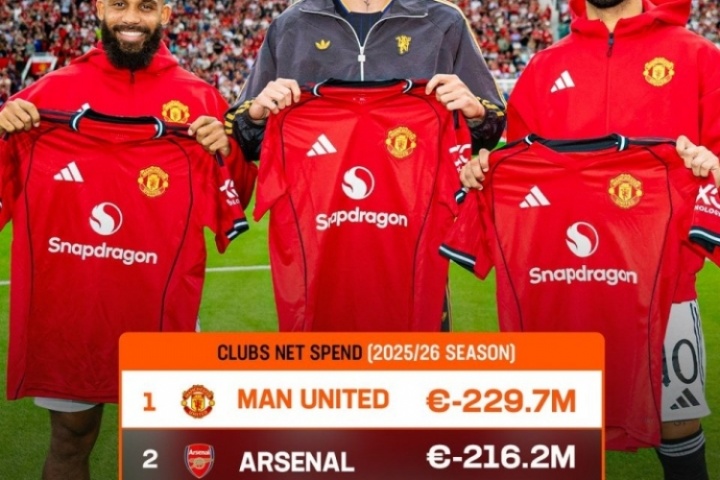 體育資訊08月13日訊 外媒LiveScore統(tǒng)計了夏窗目前為止歐洲足壇凈支出最多的五支俱樂部,曼聯(lián)、阿森納破2億歐領跑。