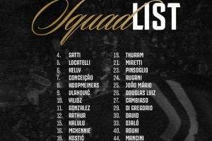 4-加蒂、5-洛卡特利、6-凱利、7-小孔塞桑、8-庫普梅納斯、9-弗拉霍維奇、10-伊爾迪茲、11-岡薩雷斯、12-阿圖爾、15-卡盧盧、16-麥肯尼、18-科斯蒂奇、19-K-圖拉姆、21-米雷蒂、23-平索里奧、24-魯加尼、25-若昂-馬里奧、26-道格拉斯-路易斯、27-坎比亞索、29-迪格雷戈里奧、30-戴維、33-賈洛、40-魯希、44-托馬索-曼奇尼、45-溫特