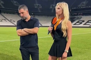 體育資訊08月13日訊 據(jù)《每日郵報》報道,在歐聯(lián)杯資格賽取勝的賽后,頓涅茨克礦工主帥阿爾達-圖蘭在接受球隊美女記者采訪時,低頭看向另一邊,這被解讀為對妻子阿斯利漢-多安-圖蘭忠誠的表現(xiàn),兩人在2018年結(jié)婚。