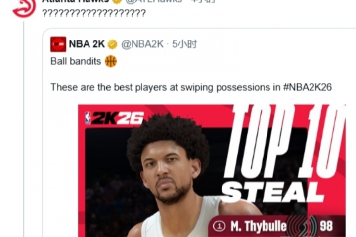 下一篇: 2K26搶斷能力值Top10公布!美網(wǎng)友:阿門呢??丹尼爾斯不是第1?