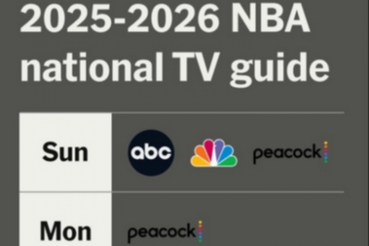 2025-26賽季的全美直播比賽將通過ESPN、NBC、ABC、Peacock、Prime等平臺(tái)播出。