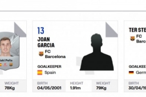由于特爾施特根的傷病,霍安-加西亞已經(jīng)順利在西甲完成了注冊,他的球衣號也已經(jīng)確定為是13號,而此前身穿13號的佩尼亞則改穿1號。