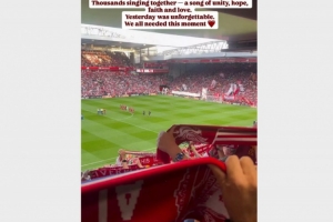 在她的帖子中,娜塔莉亞寫道:“YNWA(你永遠(yuǎn)不會獨行)是特別的。永遠(yuǎn)如此。這是一句宣言。成千上萬的人一起唱這首歌,一首關(guān)于團(tuán)結(jié)、希望、信念和愛的歌。昨天是難忘的一天,我們都需要這一刻。”