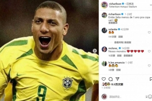 理查利森賽后更新社媒動(dòng)態(tài),曬出將身穿巴西9號(hào)的阿福頭大羅P成自己的照片,配文:“那么離世界杯還有不到一年了,對(duì)吧!”