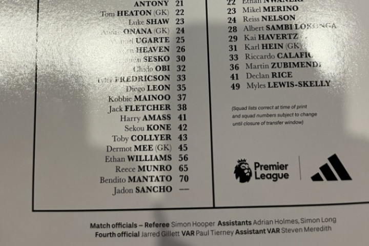 值得注意的是,在曼聯(lián)的名單中,出現(xiàn)了沒(méi)有號(hào)碼的桑喬。據(jù)此前報(bào)道,曼聯(lián)已經(jīng)接受了羅馬2000萬(wàn)歐元的報(bào)價(jià),同意出售桑喬。